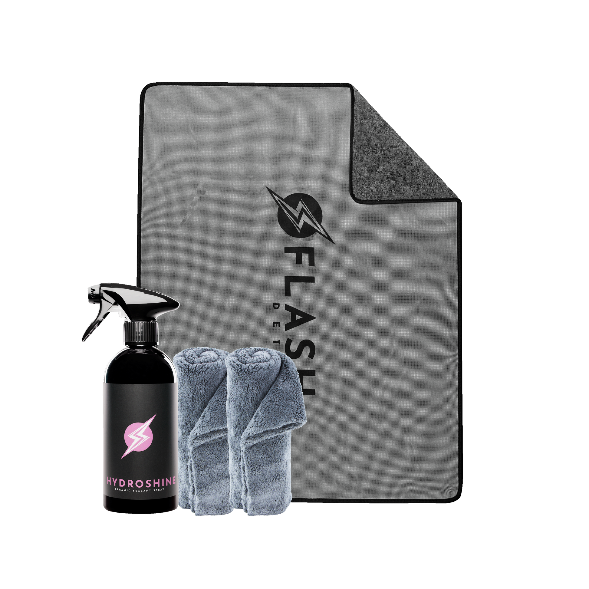 Το SEAL & DRY FULL PACK παρέχει όλα όσα χρειάζεστε για να προστατεύσετε το χρώμα του αυτοκινήτου σας και να το διατηρήσετε λαμπερό και νέο. Αυτό το πακέτο περιλαμβάνει Hydroshine, ένα υψηλής ποιότητας κεραμικό σπρέι προστασίας και την πετσέτα Flash Detail, μια κορυφαία πετσέτα μικροϊνών σχεδιασμένη για γρήγορο και αποτελεσματικό στέγνωμα. Επιπλέον, η συσκευασία συνοδεύεται από δύο μαλακά μίνι πανιά για εύκολη εφαρμογή της κεραμικής προστασίας.