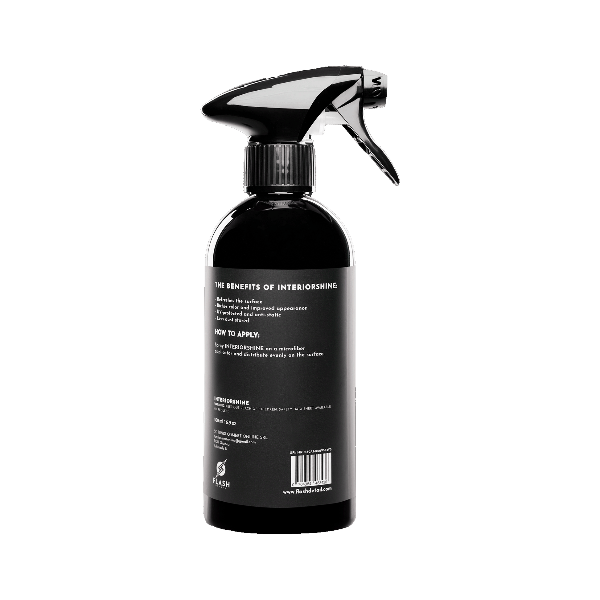 Το INTERIORSHINE παρέχει μακροχρόνια φροντίδα για το εσωτερικό του αυτοκινήτου σας, διασφαλίζοντας ότι φαίνεται ανανεωμένο και προστατευμένο. Η ενεργή φόρμουλα εμβάθυνσης του χρώματος ενισχύει την εμφάνιση της επιφάνειας, με αποτέλεσμα πιο πλούσια χρώματα και βελτιωμένη αισθητική. Επιπλέον, προσφέρει προστασία UV και αντιστατικές ιδιότητες για τη μείωση της καθίζησης της σκόνης.